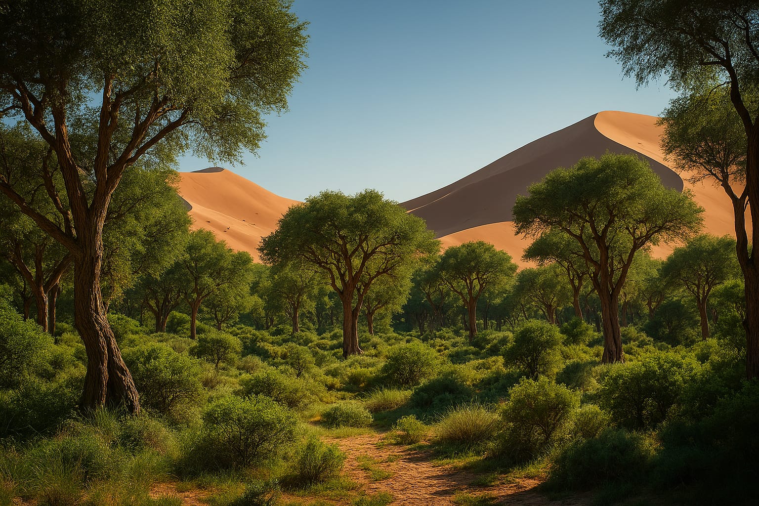 Nestled between dunes and rocky outcrops was a micro-forest, no larger than a football field, but dense with acacia, tamarisk, and desert fig. The trees were real. The soil was damp. And the air, unlike the surrounding desert, was cool and fragrant.