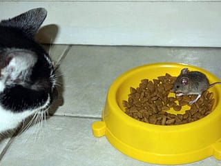 Rat eats cat food
