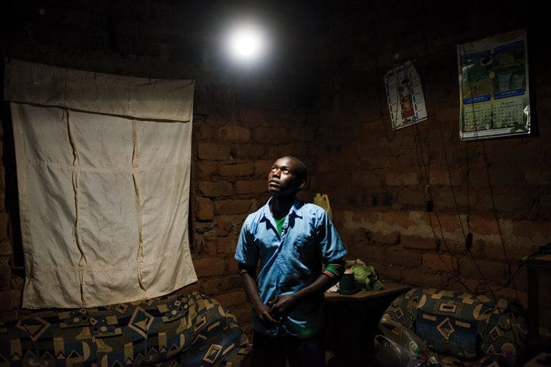 The LEDs provide a clean and cheap alternative to the kerosene lamps normally used by those with no electricity. “People spend 50 cents a day on kerosene,” says Nick Hughes, co-founder of M-KOPA Solar of Kenya, which has sold 550,000 home solar power systems in East Africa. Some families spend a tenth of their income on fuel for lighting. “It’s a crazy price for a poor fuel,” says Hughes.