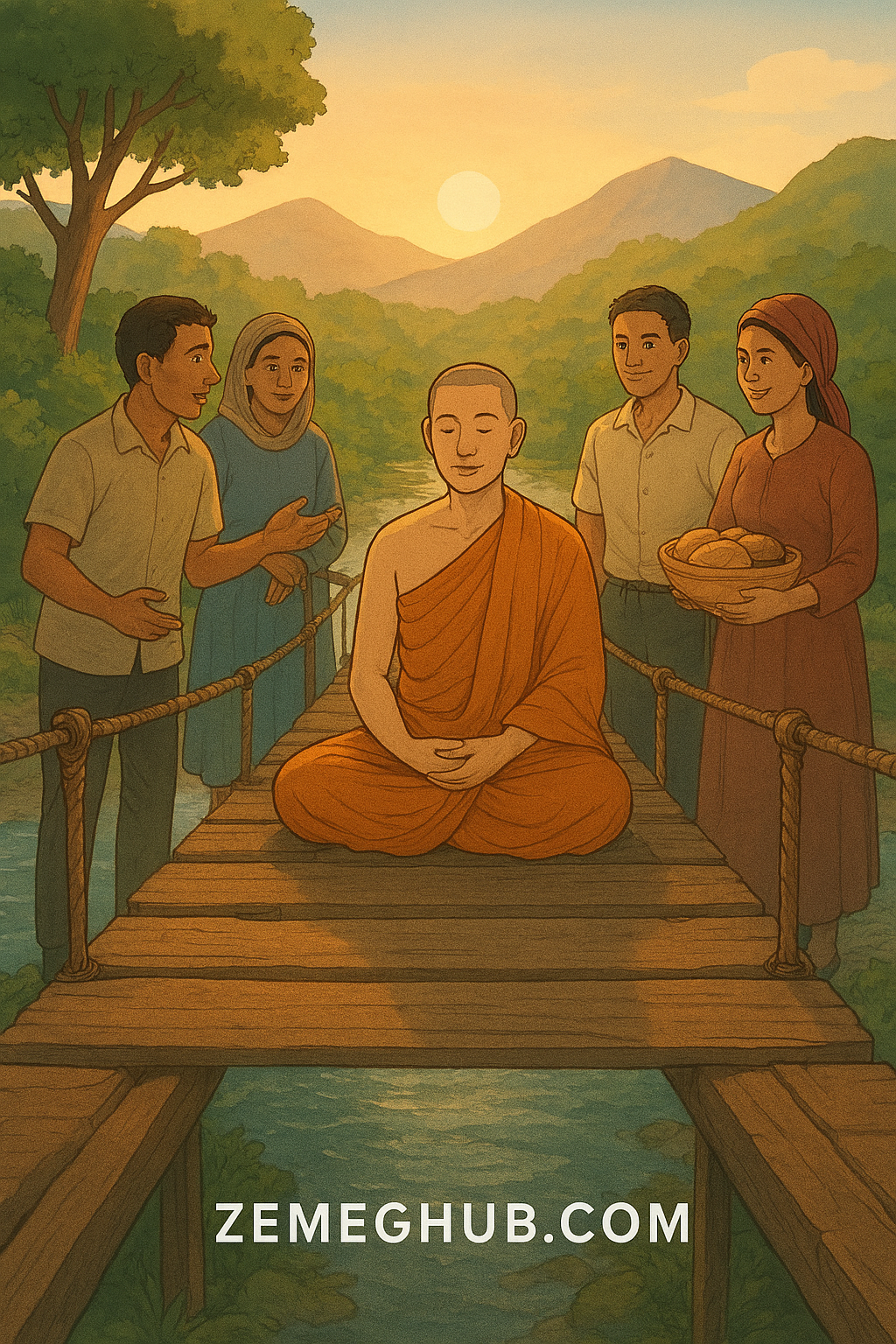 Thus, slowly, the shouts turned into whispers, the suspicions into stories, and the bridge, which for years had been a symbol of division, began to become a place of meeting. It was not the wood that supported it, but the calm the monk had sown, a calm that spread like light among the people.