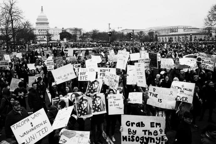 On Saturday, a constellation of woman-centered, anti-Trump protest lit up across all seven continents. (A group on an expedition ship in Antarctica adopted the unofficial slogan “Penguins for Peace.”) At the center of the action was the Women’s March on Washington, which drew an estimated half a million participants. There were men and women of all origins and orientations, a teeming parade of pink hats and protest signs that brightened against a pale silver fog blanketing the sky. There were sensible moms and crust punks, bros in Patagonia and toddlers on shoulders. A group of Gen Xers from Pittsburgh kept yelling, “Go Steelers!” A great-grandmother leaned on a walker, ambling gamely down the National Mall with clouds of cotton in her ears.