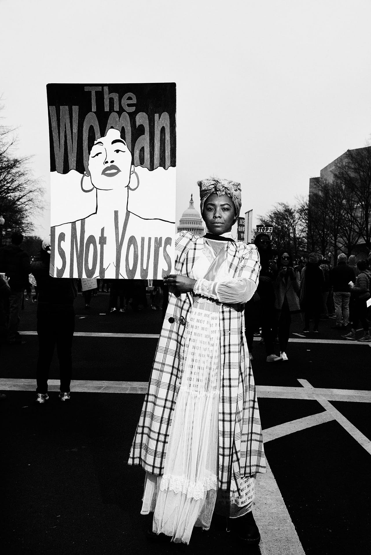 Someone who’d been looking at Twitter announced that Gloria Steinem was speaking—then Scarlett Johansson, then Janelle Monáe. There was a long procession of A-list speakers, but no one anywhere near me could hear or see them. It wasn’t noon yet, but the crowd was already large beyond reckoning, and there was no loudspeaker system or signage to suggest where else people might go.